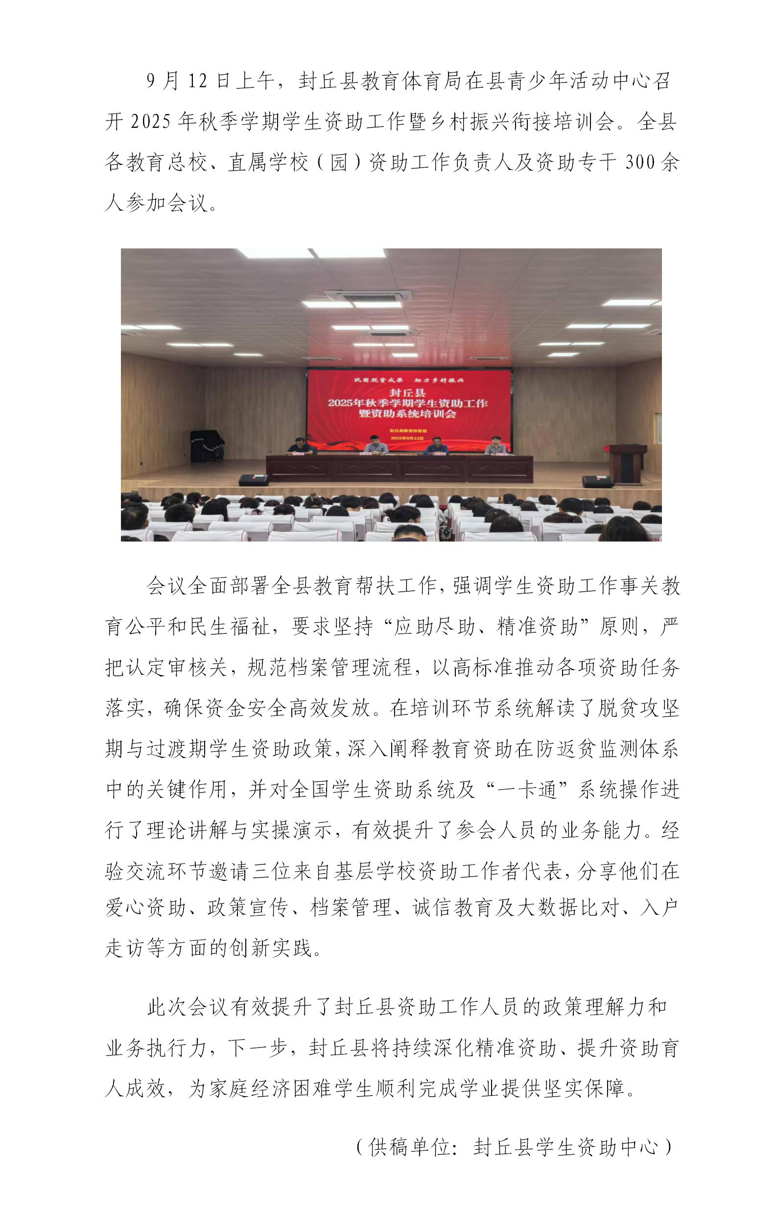 封丘县召开2025年秋季学生资助工作培训会